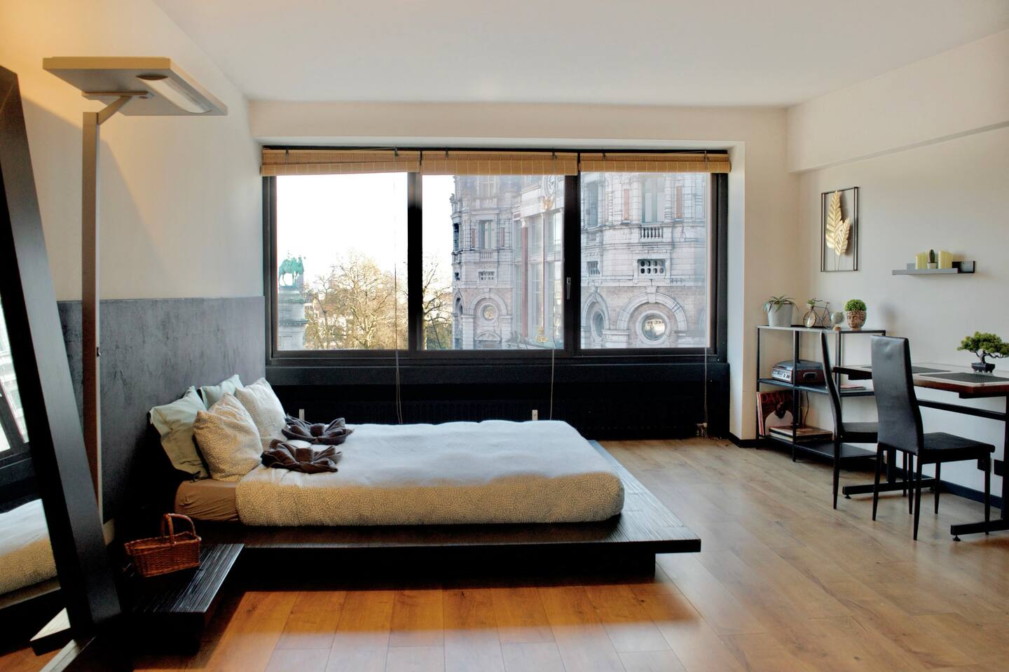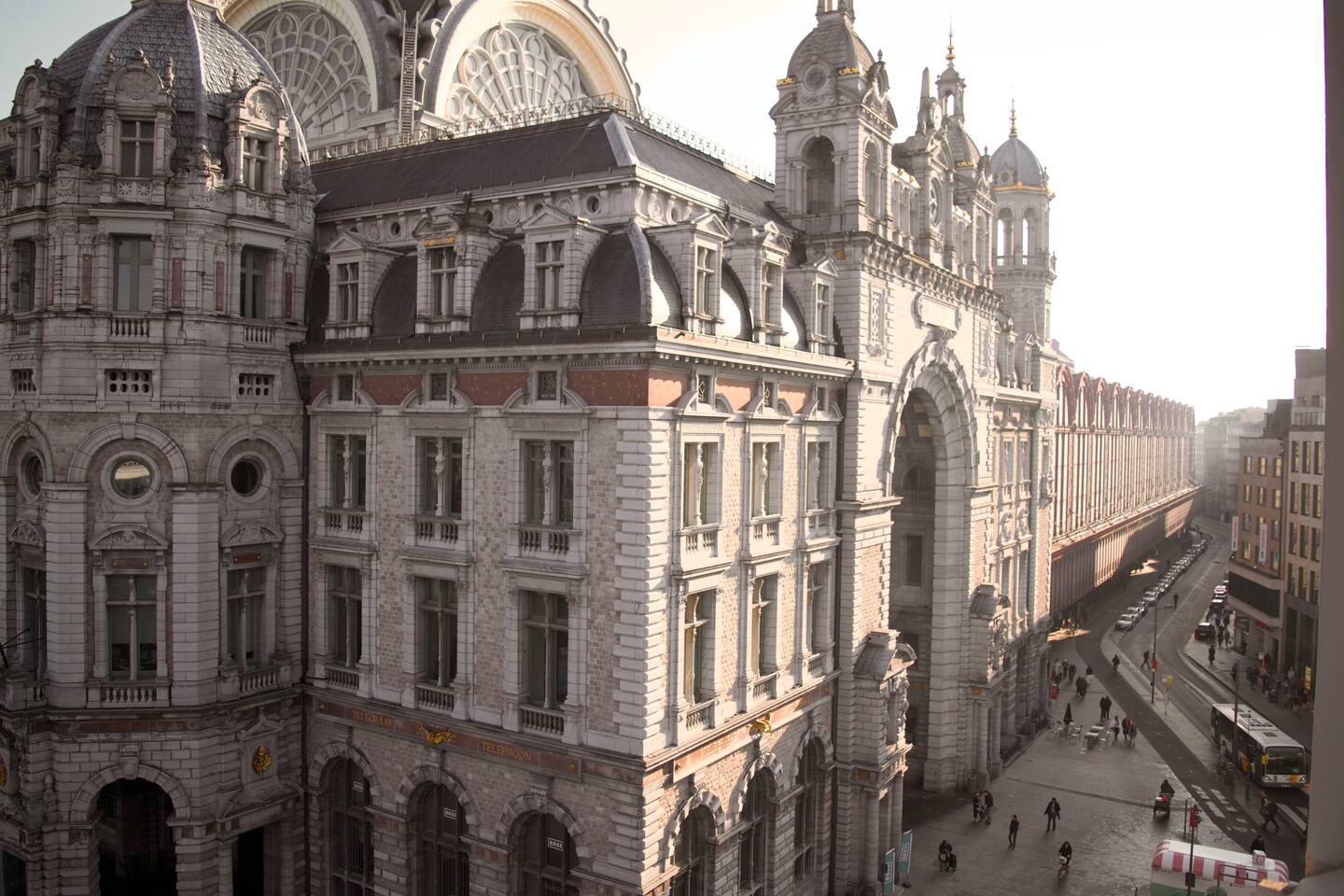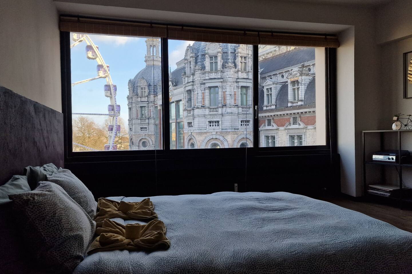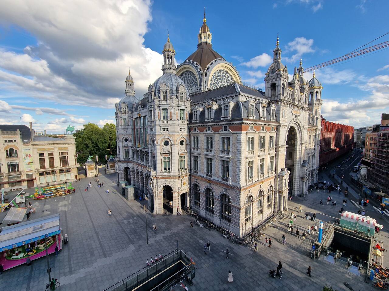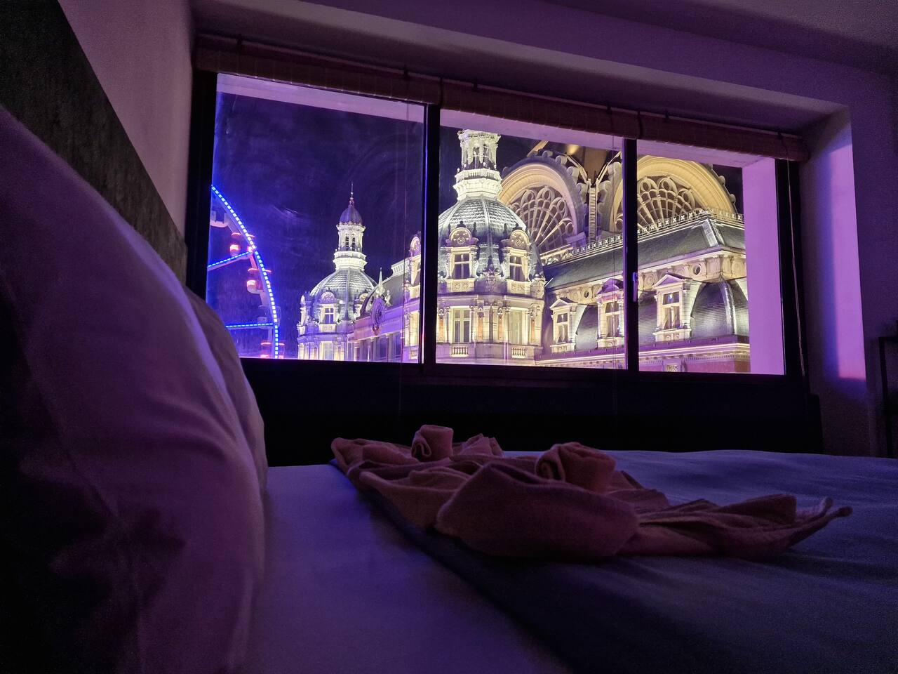 Last minute bookings until 12AM are possible 😉 Drift off to sleep under the glow of one of Europe’s most stunning landmarks — Antwerp Central Station, beautifully illuminated right outside your window. The vibrant colors of the Ferris wheel (22.09.2025 now being installed) and majestic architecture create a dreamlike atmosphere you’ll never forget. Q-Park Astridplein in front of the building €27/day or 3 mins further for 20 euro/day Indigo Zoo Parking. P&R parkings for €1/day+€2.5 tram.