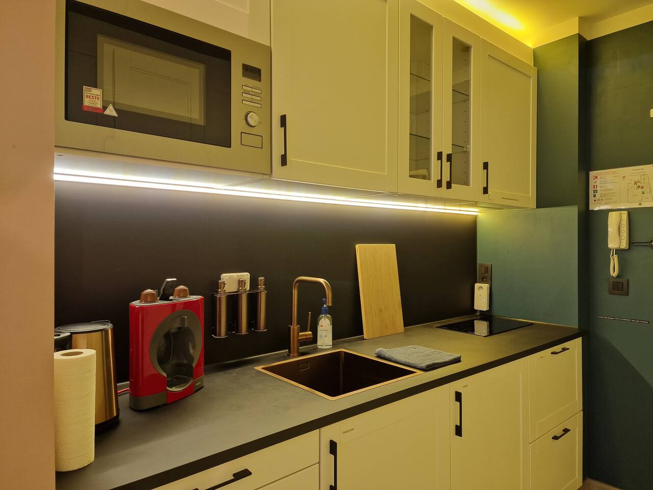 Chromecast + Netflix The entire accommodation is at your disposal. Only the outermost right wardrobe part in the kitchen shouldn't be used.