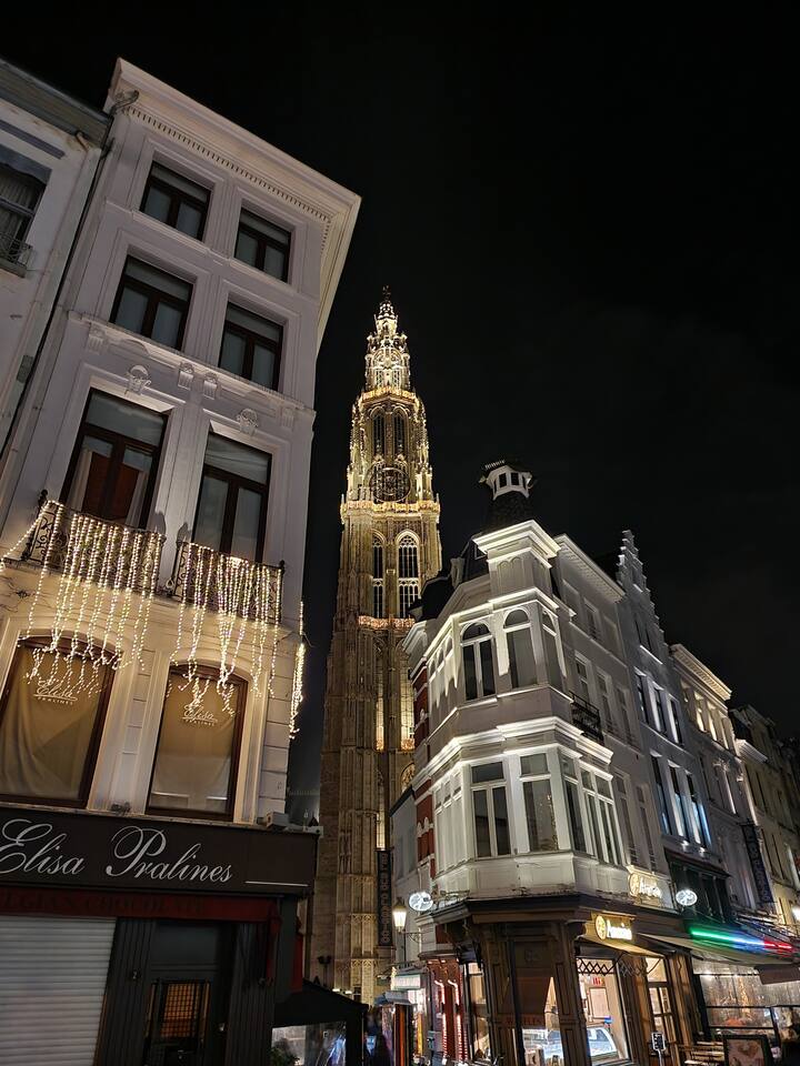 The public transport, city-bikes & e-steps are just in front of the building. Luggage Lockers @ Central Station belgiantrain .be/en/station-information/nmbs-stations/luggage-storage You can easily reach the accommodation by car, public transport and taxi. PUBLIC TRANSPORT: For bus transport, please refer to the website “delijn”. For train transport, please refer to the website “belgiantrain” or “nmbs” PARKING: For all parking information, we refer you to the website “seety”. This website will clearly show the parking options when entering the accommodation address. It shows parking costs, the possible durations and even public (underground) parking options if available. Groeplaats (Green Square) and Cathedral of Our Lady is within 15 minutes of walking or 1.5km Het Steen Castle is within 23 minutes of walking or 1.8km MAS museum with a free rooftop (!) is 26 minutes of walking or 2km